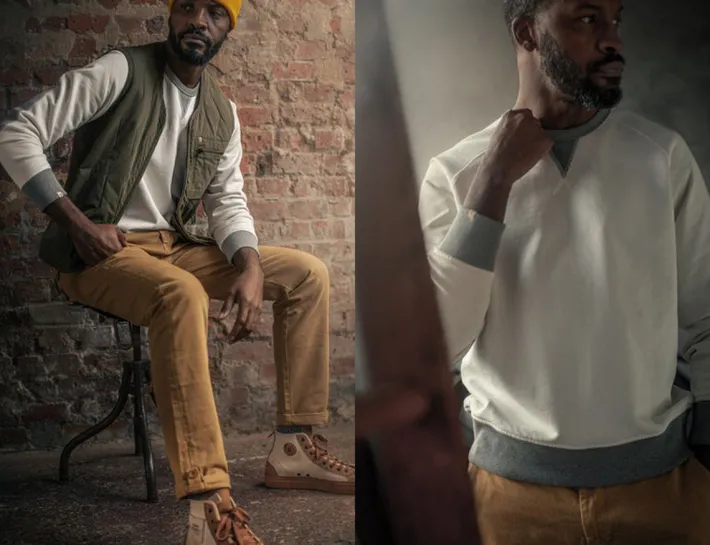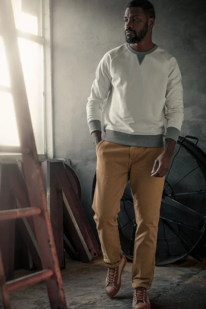 Weighing In At 430Gsm, The Stone White Sweatshirt Strikes The Perfect Balance Between Substance And Style. The Contrasting Grey Cuffs And V-Insert At The Neck Seam Add A Touch Of Classic Detailing, Enhancing The Overall Appeal Of This Wardrobe Essential.