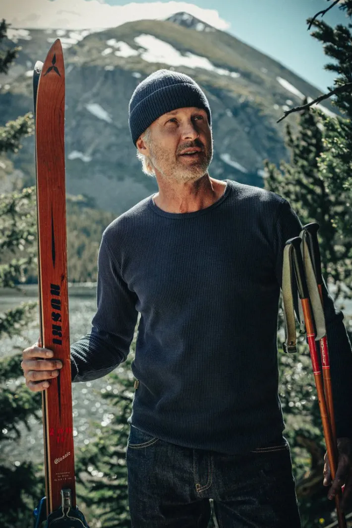 Handcrafted From Rugged 100% Cotton Waffle Fabric, Weighing A Solid 350Gsm, This Top Is A Testament To Enduring Quality And Unrivaled Comfort. Its Deep Indigo Shade And Cuffed Sleeves Conjure A Timeless Allure, Offering A Unique Take On The Classic Crew Neck.